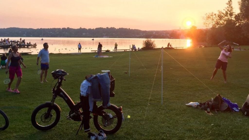 Badminton kann man fast überall spielen. Wir spielen in der Franz – Dietrich-Halle oder am Starnberger See.